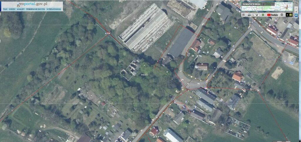 Działka ogrodzona siatką metalową , z wjazdem od wschodu- przez